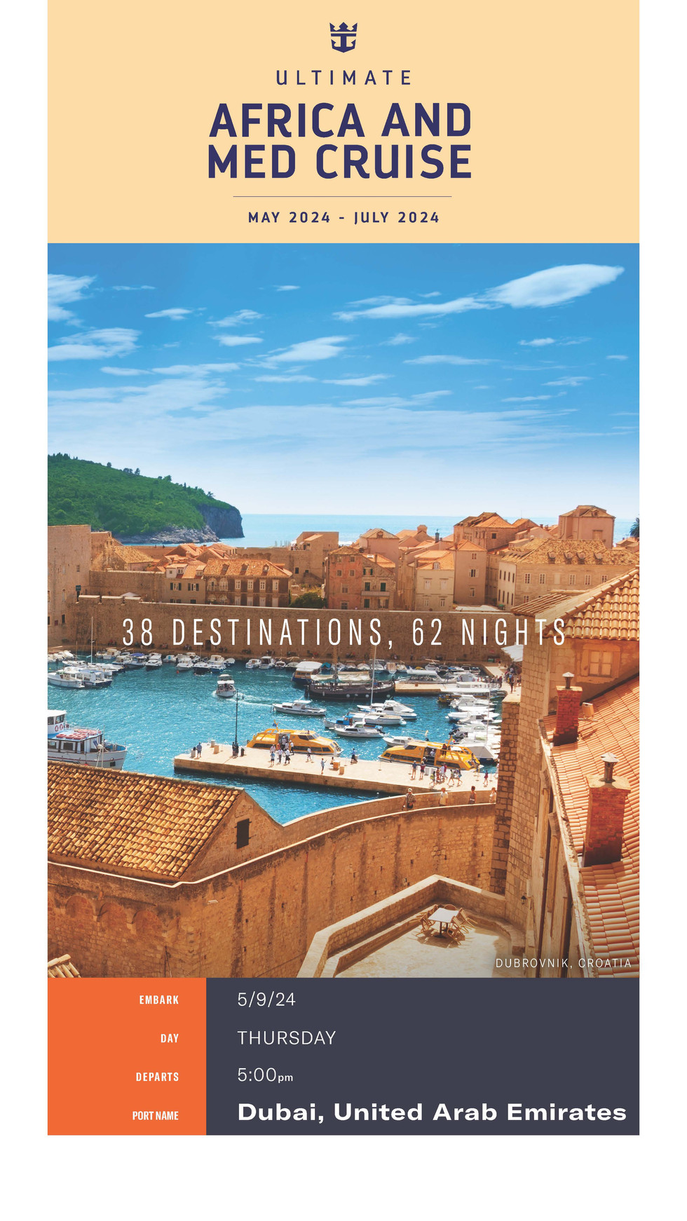 Option 1 is a detailed port visit to several African cities. This will only have 21 days at sea and twenty-one ports,