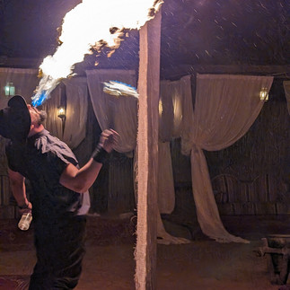 Just when I thought it could not get any more thrilling, a fire eater took the stage. The sight of him handling fire so fearlessly was both exhilarating and terrifying. He performed daring feats, from breathing fire to swallowing flames, each act more daring than the last. The heat from the fire was palpable even from a distance, and the audience watched in awe, unable to look away. His grand finale, a spectacular display of flames and sparks, left us all cheering and applauding loudly.
