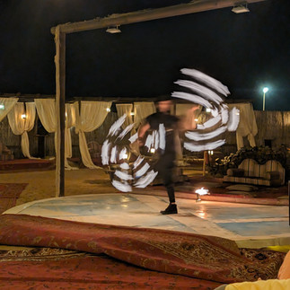 As the performances concluded, it was time for dinner, and what a feast it was! A five-star traditional desert dinner awaited us, with an array of dishes that showcased the rich culinary heritage of the region. There were succulent kebabs, fragrant rice, tender lamb, and an assortment of mezze that were bursting with flavor. Each bite was a delight, and the hospitality was second to none. We dined under the stars, the cool desert breezes a perfect complement to the warm, hearty meal.